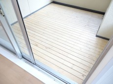 バルコニーの奥に物置がありました。隣に蛇口もありますので、ちょっとした植栽のお手入れもできそうです。