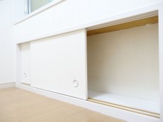 リビングにはこんな小さい引き戸の収納も作られていました。