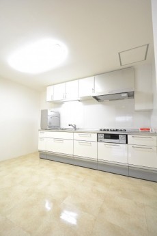 横幅のある大きなキッチンはその分収納も多く、作業スペースも広々しています。
