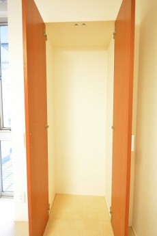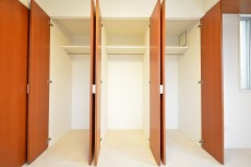 壁一面にクローゼットが設置されています。奥行きもあるので、衣類から