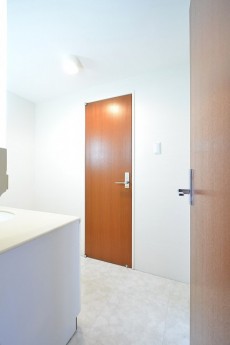 正面のドアがリビングダイニング、右手が洋室、左手が洗面所になっています。