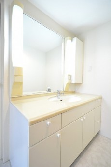 手洗い場というより、洗面台があり、収納スペース豊富に設置されています。
