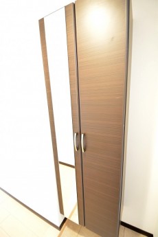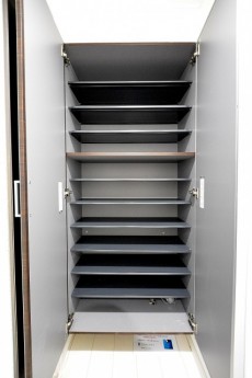 すぐ右側に縦に大型のシューズボックスが設置されており、収納力は◎。