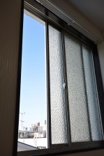擦りガラスから入る光が、日当りの良さを感じさてくれます。