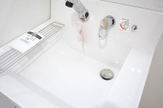 洗面台は鏡の裏が一部収納になっていますのでハブラシなどの毎日使うものを入れておくのに便利。洗面ボウルの下にも収納がありますので消耗品納等のストックはこちらへどうぞ。