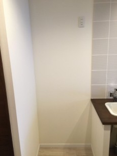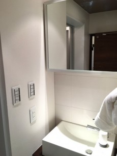 右手にトイレ、正面に洗面台、左手にバスルームの並びになっています。