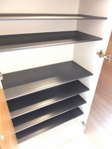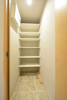ドアの向こうにはシューズインクローゼット!靴がたくさん入るのはもちろんの事、ベビーカーやキャリーケースなども置いておけます。