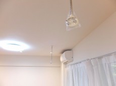 リビングには洗濯物の部屋干し用のリングが天井から下がっています。