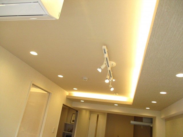 キッチンの西側にあるのが、4.5帖のサービスルームです。新規に取り付けたLEDダウンライトが落ち着きのあるお部屋を作ってくれていました。
