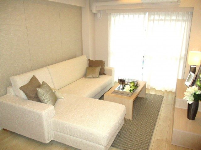 家具付きではありませんが、置いてあると生活のイメージがし易くて助かります。大きさや色などの参考にもなりますしね。