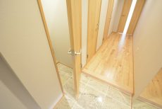 木材が多く使われていて落ち着きのある雰囲気。幅もゆったりとしています。家具を入れる時とかに助かるんですよね。
