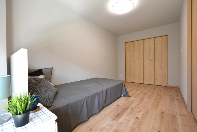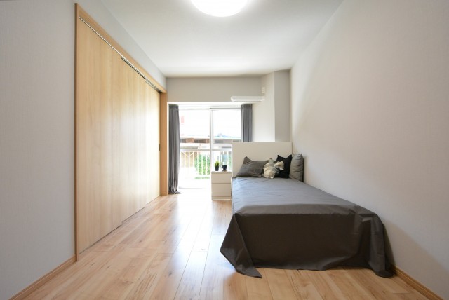 こちらは約7帖の洋室。洋室としては広めで、今はベッドが一つ置いてありますが二つでも余裕で置けそうです。