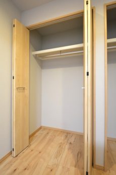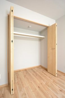 南側の壁にはクローゼットが付いています。扉が大きく開くので、大きな物もこちらに収納できます。