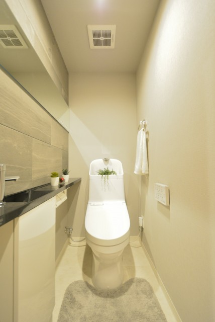 ナチュラルなお部屋とは少し印象の違う、シャープな雰囲気のトイレです。