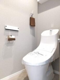 サニタリールームの隣には、トイレがあります。上部に吊り棚がありますので、掃除道具・ペーパーのストック等々、上手にお使いしただけそうです。