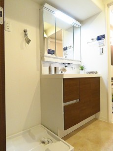 洗濯機置場、洗面化粧台、バスルームがまとまってます。脱衣スペースも余裕があり使い勝手がよさそうです。