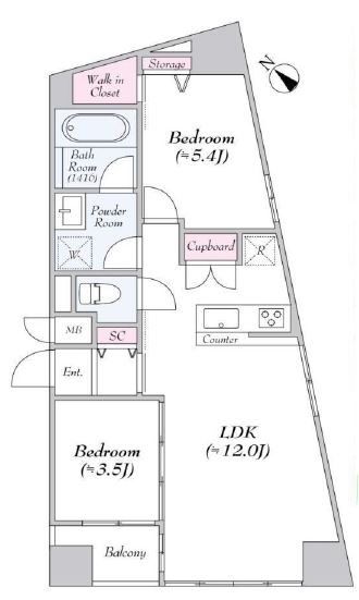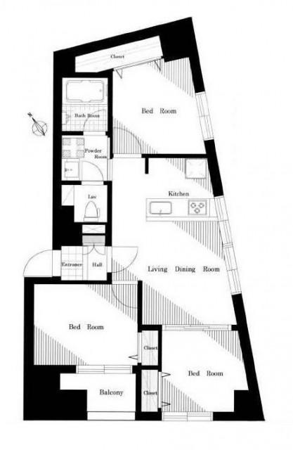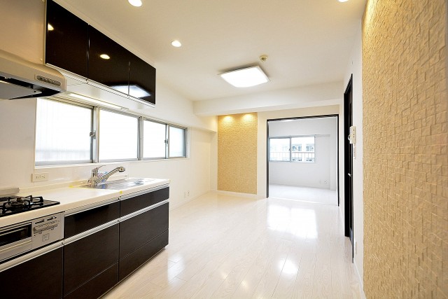 LDKに入ると正面にキッチンがあり、ベッドルームが左右に振り分けられています。