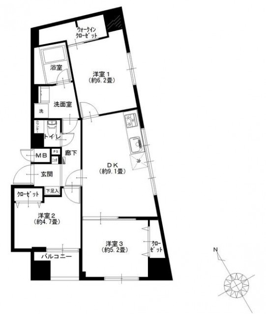 バルコニーは約1.75㎡とコンパクトサイズです。