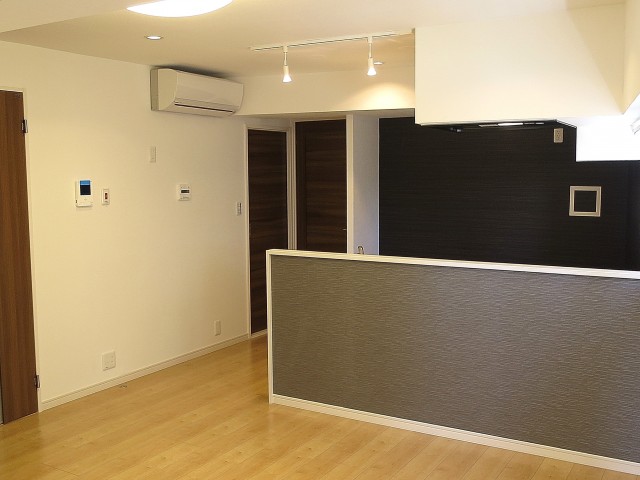 LDKのエアコンは天井埋込タイプで見た目がスッキリしています。