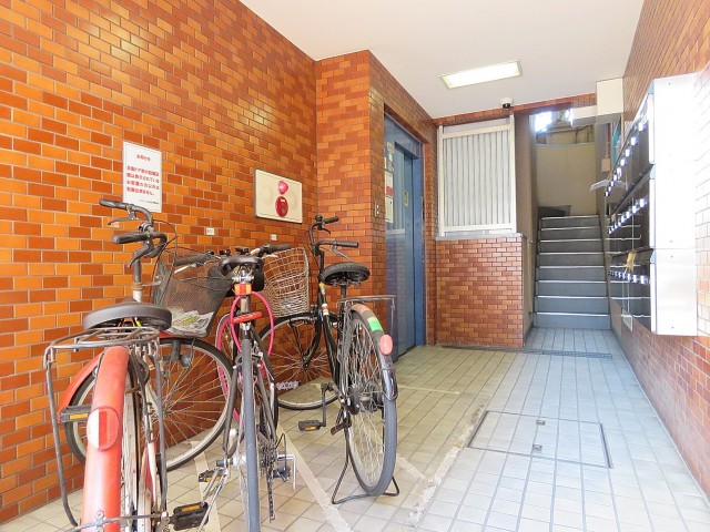 エントランスホールにも数台自転車がありましたが、共用階段横のスペースも駐輪スペースになっていました。ちなみに自転車置場は無償でご利用いただけます。