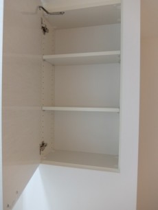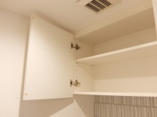吊戸棚がついていますので、トイレットペーパーや洗剤がここに収納しましょう。