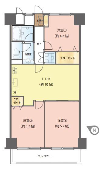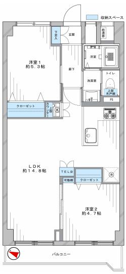 今回ご紹介するお部屋は3階、間取りは2LDK、専有面積は54.68㎡。おひとり暮らしからファミリーまで幅広くお使いいただけるお部屋です。
