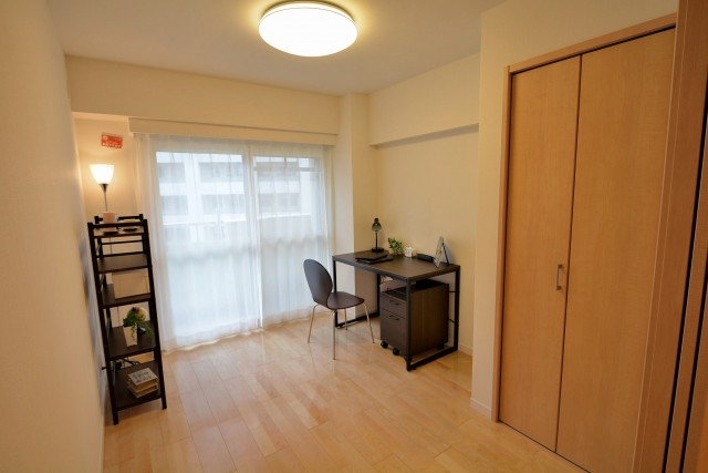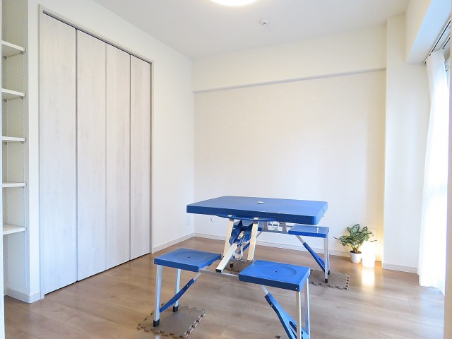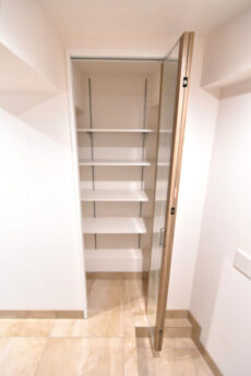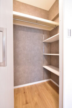 こちらの洋室にはクローゼットにくわえて、可動棚の収納スペースが設けられています。収納スペースが多い分、居住スペースは有効的に使えそうです。