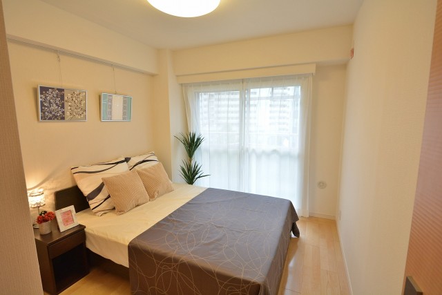 廊下に面していて独立性も高く寝室に良さそうなお部屋です。台形なのでベッドを選ぶ際にはサイズに気を付けましょう。窓は北向き。北向きって一般に暗いイメージがありますが、必ずしもそうとは限りません。窓から見えるところに日が当たれば意外に明かるかったりするんですよ。