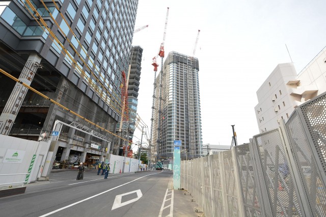 さてさて、戻って先ほどの路地を入っていくと、右側に背の高ーいタワーマンションがありました。