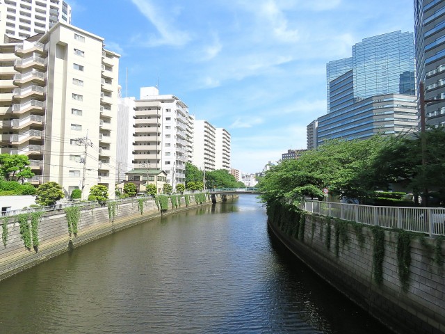 ライフを背にして、建物を出ると、目の前には目黒川が流れていました。