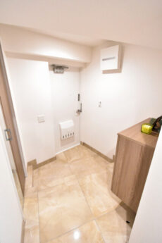 洗面室内になかった洗濯機置場はLDKを入ってすぐ右側に設置されていました。ここならお洗濯が終わればすぐバルコニーへ干せて便利かも!