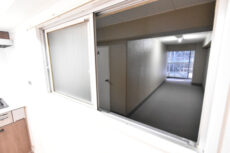 この部分には冷蔵庫や家電ラック、カップボードなどが置けるようになっています。窓の外は外廊下。残念ながら少し中に入ったところで日差しなどは期待出来そうにありませんが、換気には活躍してくれそうです。