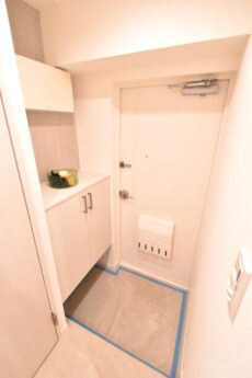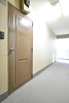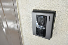 玄関ドア横にはテレビモニター付きインターホンが設置されていて、お部屋の中から訪問者を確認する事が出来ます。映像を見てから応対するかを決められるので安心ですね。ドアスコープもありますが、向こうからも見られている気がして苦手です^^;)