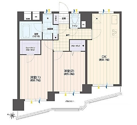 5.67㎡、ほぼ西向き。お洗濯物干し作業もしやすい広さです。