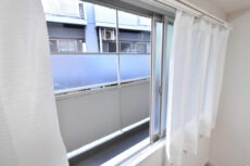 窓の外は外廊下。こちらは外に面していて明るいですね。クローゼットは先程の洋室のものより大きめ。床部分を上手く使えばさらに収納力を上げられますよ。