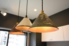 キッチンカウンターの上にはアイアンの照明が2つ。