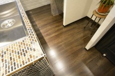 洗面室はLDK内からいけるようになっており、扉はちょうどキッチンの横にあります。
