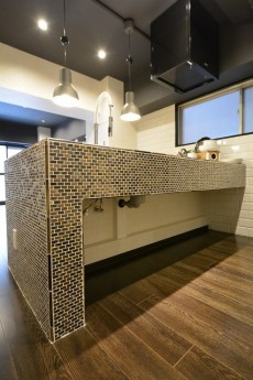 写真クリックすると拡大するので、カウンターのタイルもじっくりご覧ください。