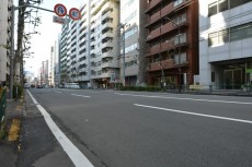 目の前は比較的交通量の多い道。二重サッシになっていたので中は比較的静かでしたが、外に出るとそれなりの音はします。ちなみに『ソニー通り』というらしいですよ。ただ道幅が広い事によって、高いビルが並んでいる割に開放感のある眺めになっていますね。