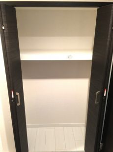 扉の奥は間口が広くて使い易そうなクローゼット。嵩張る物も難なく入りそうですね。窓の外は隣の壁になっていました。日射しなどは期待出来ませんが明るさはありますし、風通しは問題なさそうです。