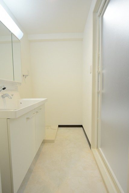 こちらには、洗面台、洗濯機スペース、浴室があります。