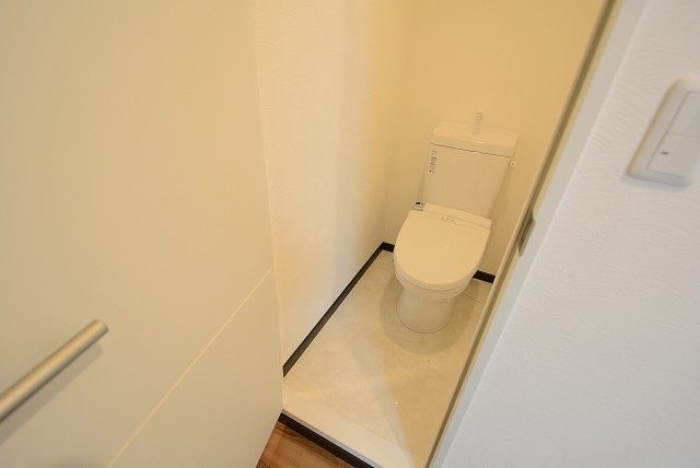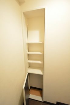 ウォシュレットとペーパーのストックなどを置くのに便利な棚がついています。