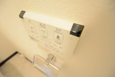 玄関ドア横にはテレビモニター付きインターホンが設置されていて、お部屋に居ながら訪問者を確認する事が出来ます。返事をする前にチェックすれば、セールスなどを断る手間が省けますよ。
