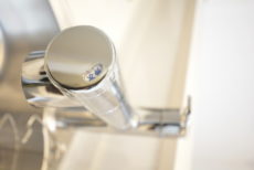 水栓は浄水機能付きシャワー水栓。簡単切替えで美味しいお水が使えます。ヘッドが伸びるのでシンクを流したりにも便利ですよ。