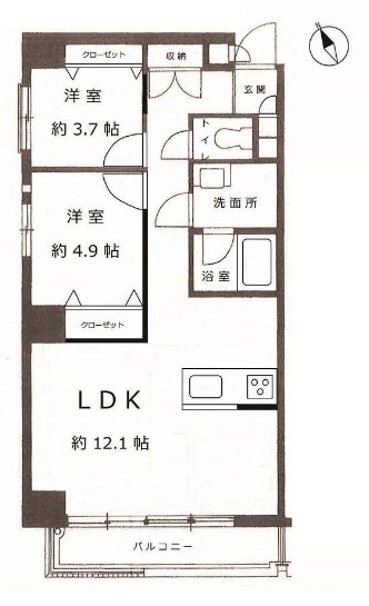 今回ご紹介のお部屋は8階、間取りは2LDK、専有面積は47.86㎡となっています。