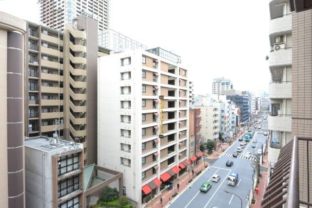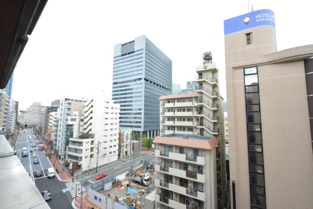外はエントランス前の八つ山通りを挟んでビルやマンションが建ち並ぶ風景。バルコニーにでると車の走行音はそれなりにしますが、ドアを閉めれば室内は静かです。ゼヒ現地で一度ご確認くださいませ。