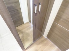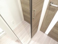 表扉の半分には鏡がついているので、お出かけ前の身だしなみチェックもバッチリできますよ。