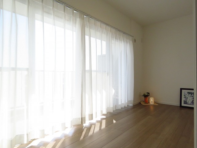 こちらの洋室は横長でベッドが置きやすそうです。陽当たりがいいですね。