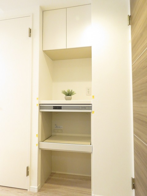 コンセントの差し口があるので電子レンジや炊飯器などを置いておけます(´▽`*)ヤッター