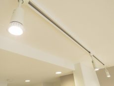 キッチン上にはライティングレールにスポットライトもついており、お好きな方向に明かりを調節できます。